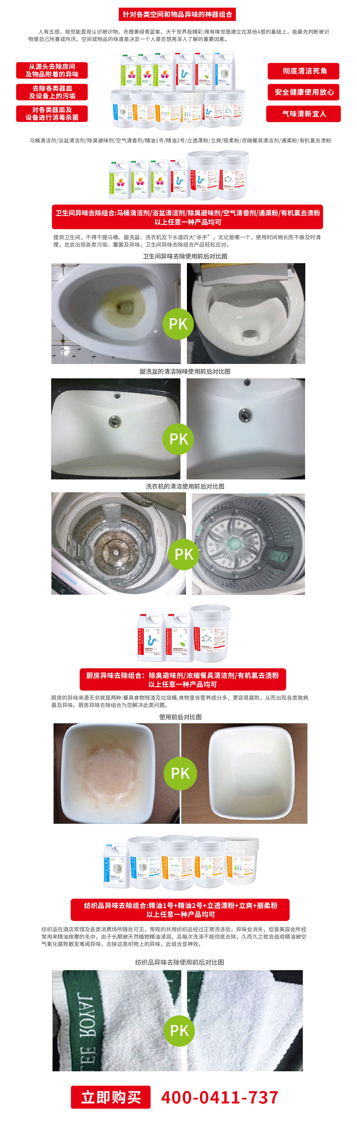 針對衛(wèi)生間、廚房、紡織品異味的去除。